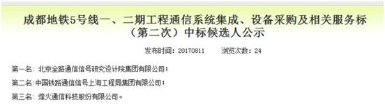 近日,成都地鐵5號(hào)線一、二期工程通信系統(tǒng)集成、設(shè)備采購(gòu)招標(biāo)結(jié)果揭曉,中國(guó)通號(hào)集團(tuán)北京全路通信信號(hào)研究設(shè)計(jì)院有限公司攜手廣東創(chuàng)電科技有限公司中標(biāo),創(chuàng)電科技將承擔(dān)交流電源屏和UPS電源系統(tǒng)項(xiàng)目。